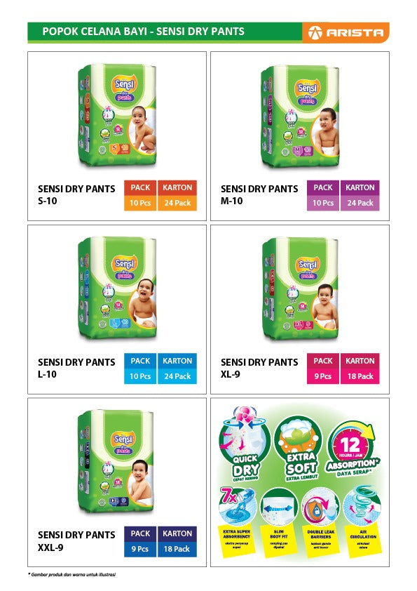 SENSI Baby Pant Diapers has double leak guards that help to prevent leakage, giving you a peace of mind. With its’ elastic waist which gives a comfortable fit and circulation that accelerates air out, providing your baby with long lasting comfort. The super absorbent dry core locks fluids and ensures surface dryness, and the soft, non woven outer cover provides improved comfort and modesty.